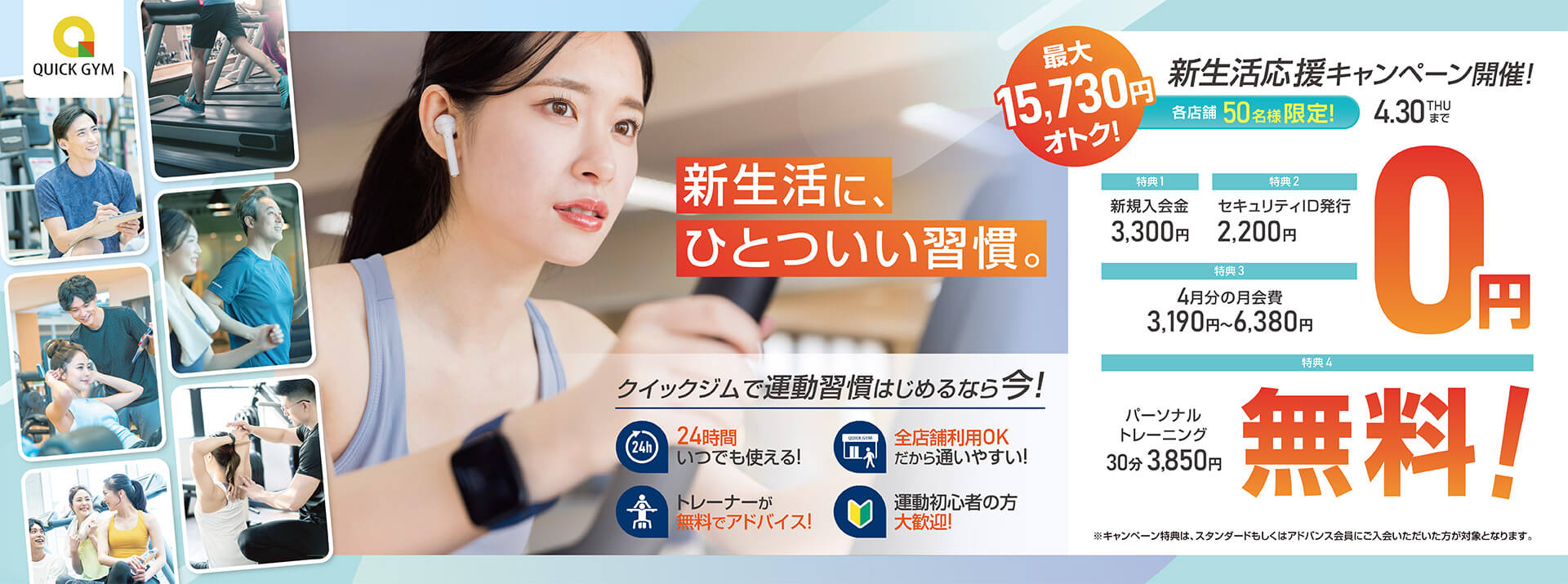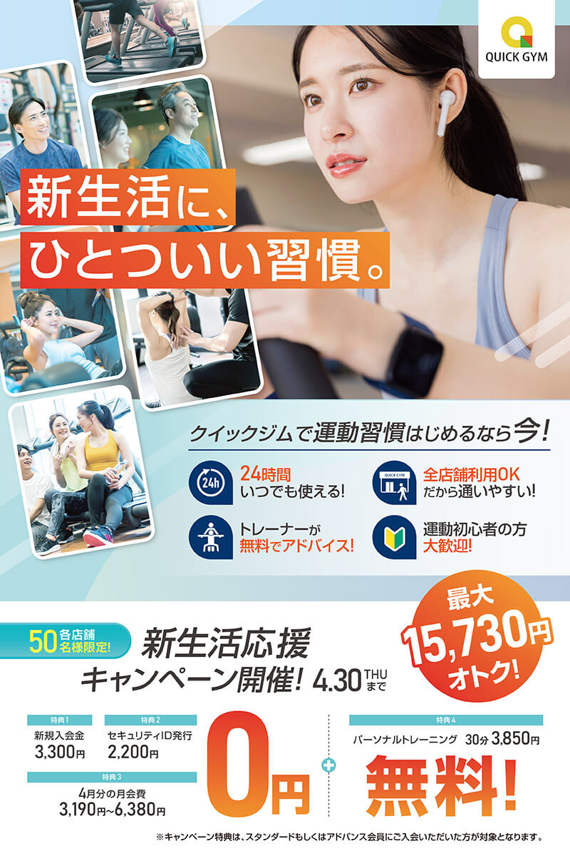 入会金、登録料、初月分月会費無料!